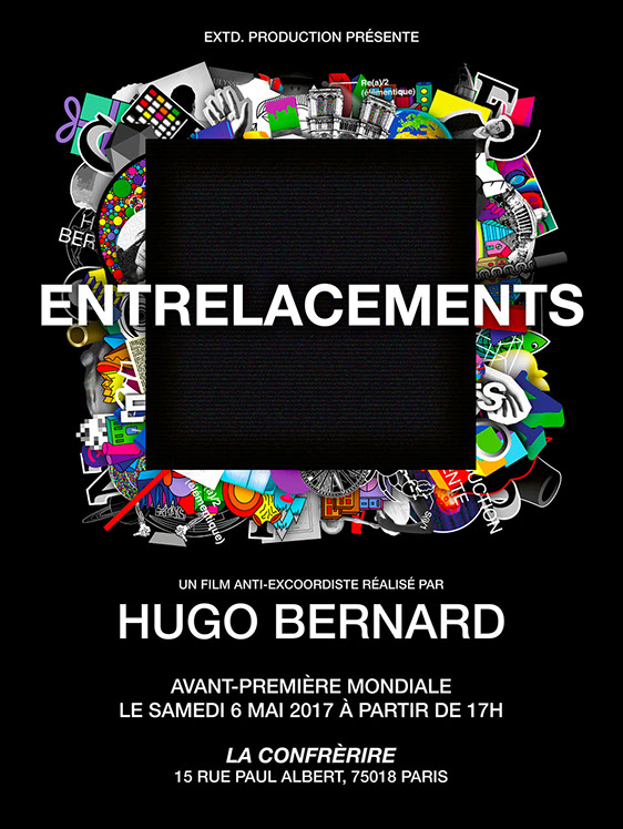 "D'une durée de 11 minutes environ, ce film anti-excoordiste se caractérise par la réunion de deux aspects d'une même œuvre. Entre l'une qui est quasiment faite et l'autre qui ne l'est quasiment pas, ENTRELACEMENTS utilise la technique de la disjonction son-image pour réunir deux approches d'une seule réalisation, toutes deux issues d'univers différents. Si la bande-son contient quelques ébauches verbales incertaines et parfois hermétiques, la bande-image - calée sur les sonorités d'une musique classique modifiée, absente et même cachée - offre un véritable « foutoir esthétique » où s'entremêlent, avec une frénésie croissante, des éléments empruntés à la peinture, la sculpture, la poésie, le roman, le théâtre, et à bien d'autres domaines artistiques. D'une seule traite, ce film dense fait cohabiter deux espaces-temps discordants, deux « Hugo Bernard » distincts et deux états opposés d'une œuvre qui forment un immense tout déstructuré, complexe et insaisissable."