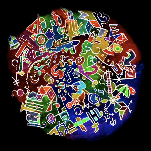 Ce signe complexe est d’abord le résultat d’une réunion réalisée à l’aide du mode de fusion « différence » entre les visuels suivants : une flèche, un extrait du Traité de Bave et d’éternité (1951) d’Isidore Isou chromatisé, une tablature de guitare déformée aléatoirement (polythanasie polyautomatisée), le katakana « ho », un motif abstrait de format carré, une double intégrale cerclée, une phase lunaire, un signe issu de la pierre d’Inga. En outre, ces éléments se voient non seulement subir une rotation aléatoire et dynamique à l’aide d’une expression informatique, mais voient aussi leur longueur et hauteur respectives être randomisées dynamiquement par le même procédé. L’ensemble de ces parties a été répété 8 fois dans le but de souligner la décomposition des transformations évoquées (un peu à la manière des futuristes), mais aussi pour réaliser un dégradé chromatique. Tout ceci participe à la réalisation d’un seul et unique signe dont la signification conceptuelle « 111 » a été choisie aléatoirement.